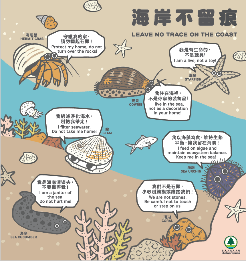 Agriculture, Fisheries and Conservation Department Address: 5/F, Cheung Sha Wan Government Offices, 303 Cheung Sha Wan Road, Kowloon; or Unit 2201, 22/F, CDW Building, 388 Castle Peak Road, Tsuen Wan, N.T. Enquiry: 1823/ marineparks@afcd.gov.hk