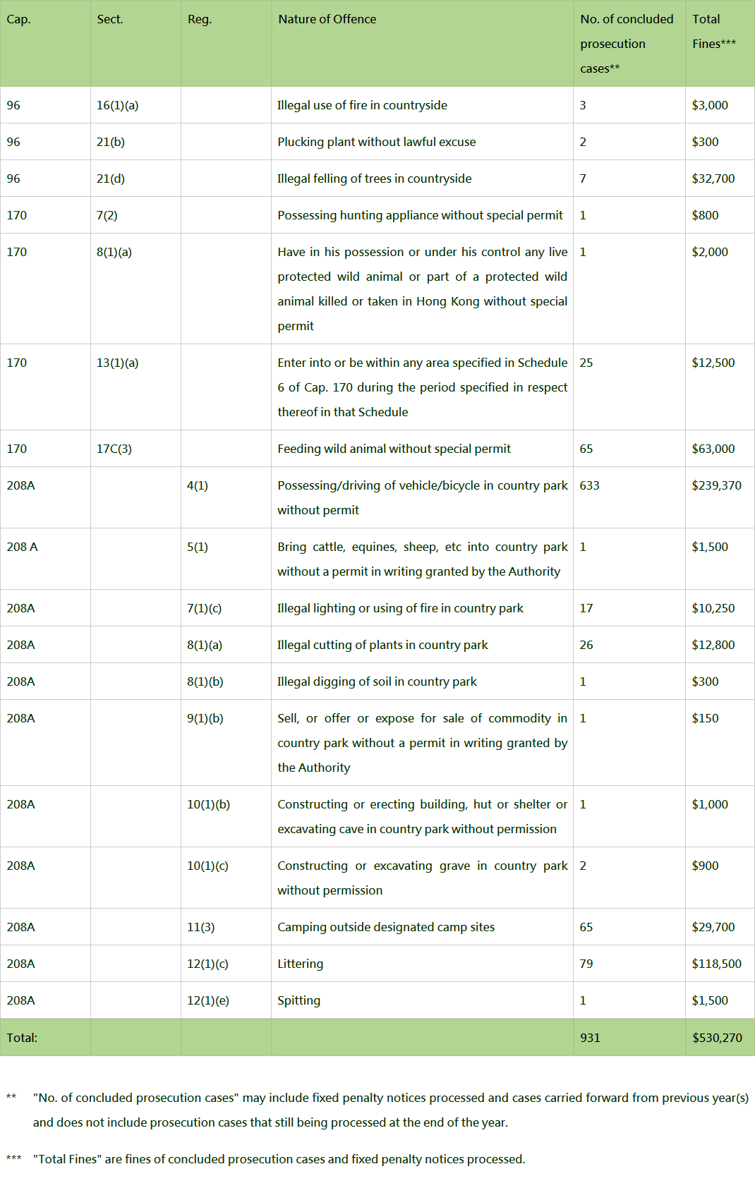 Illegal lighting or using of fire in country park |