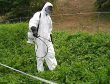 ![]() 工 作 人 員 正 在 施 用 除 草 劑