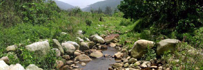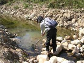 | 修復工程完成後,漁護署隨即展開為期兩年的生態監察計劃,以監察河流的生態復原進度。監察計劃的範圍包括河道的環境特點、水質、植被、水生大型無脊椎動物和淡水魚。為取得監察計劃所需的參考數據,我們在貼近已修復河段的上游選定一段未受干擾的天然河段作為參考河段,而同時在已修復的河段和參考河段採集樣本。 |